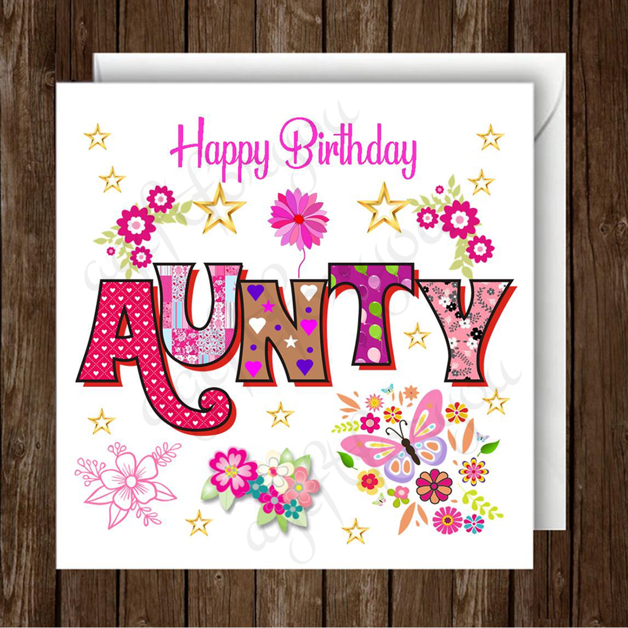 Happy Birthday Aunty. Butterflies & Floral. Greeting Card. Etsy